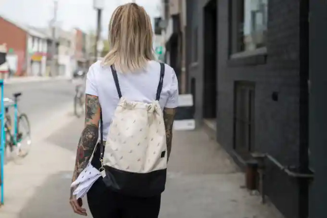 A limited edition drawstring backpack made with high-quality leather and photochromic ink on canvas. This experimental project sold out in five days on Kickstarter.